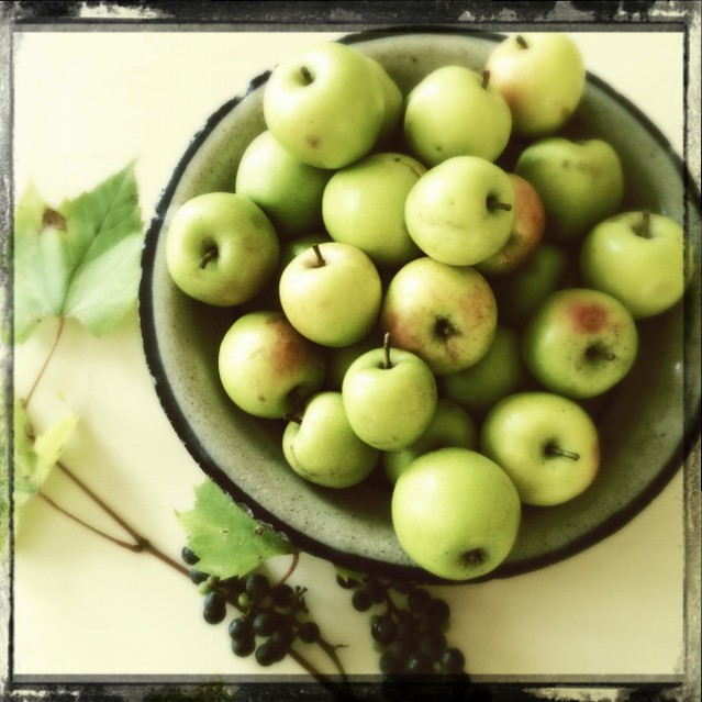 I had to laugh. Without blowing my friend’s cover, I’ll disclose that she is an apple person and her family owns an orchard in Upstate New York. “Well, yes,” I chuckled. “They are in fact real apples. Crabapples, maybe, and wild in flavor, crispness and sweetness, but apples just the same.” I proceeded to fill her purse with the beauties, because I couldn’t stand to walk away from such an abundant harvest.*